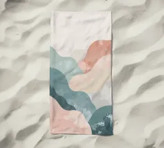 Des courbes douces de bleu et de pêche créent un motif abstrait apaisant qui évoque un sentiment de paix et de relaxation. Ce motif est parfait pour une décoration moderne.