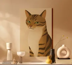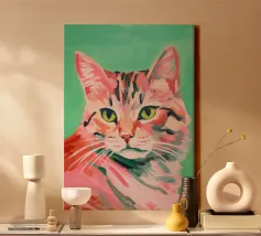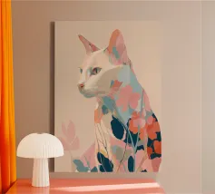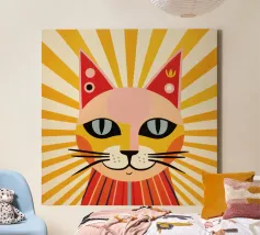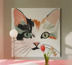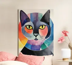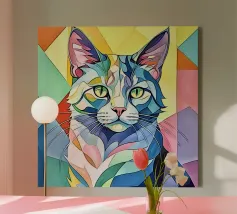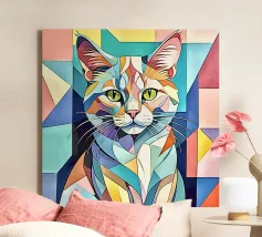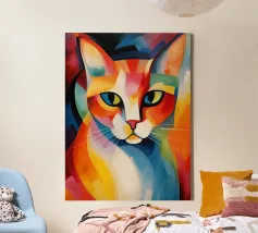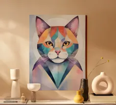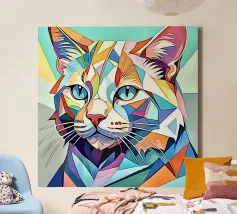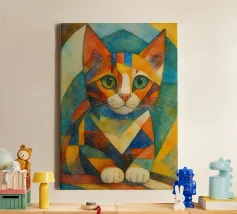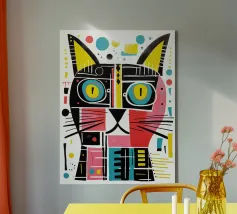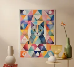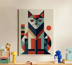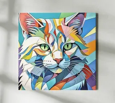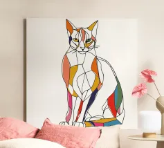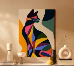 Représentation artistique d'un chat dans un style abstrait avec des surfaces colorées - ludique, moderne et plein d'expressivité. Motif de chat en bloc de couleur géométrique Teintes harmonieuses, chaudes et vives Interprétation contemporaine d'un classique animalier Idéal pour les amateurs de styles artistiques modernes Expressif, créatif et polyvalent