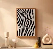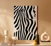 Ce puissant motif en noir et blanc joue avec virtuosité sur l'illusion d'optique et les lignes. S'inspirant de l'op art et du minimalisme, un profil féminin se dessine à partir de rayures zébrées rythmées - élégant, mystérieux, presque hypnotique. La composition est à la fois moderne et iconique, idéale pour les intérieurs au style affirmé qui ont un penchant pour la concision graphique. Ce tableau aime être seul et de préférence dans un format plus grand.