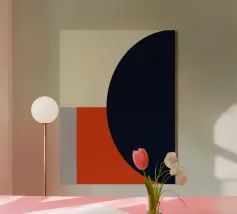 Une composition abstraite frappante et harmonieuse présentant des formes géométriques audacieuses dans une palette de couleurs à la fois terreuse et moderne. Avec un équilibre parfait entre la structure et le mouvement, cette œuvre d'art transmet un sentiment de stabilité et d'expression artistique. L'interaction entre le bleu profond, le beige chaud, le vert riche et le rouge audacieux ajoute de la profondeur et du contraste, ce qui en fait une œuvre accrocheuse mais apaisante. Idéal pour les intérieurs contemporains, cet imprimé s'accorde avec les styles de décoration minimaliste, mid-century et moderne. Parfait pour l'art mural, les posters, la décoration d'intérieur, etc.