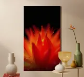 Cet arrière-plan captivant présente une représentation abstraite d'une fleur rouge brillant sur un fond sombre. Les couleurs vives et les détails complexes en font un choix frappant pour un papier peint de salon.