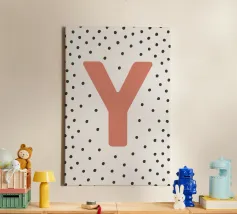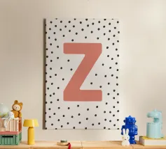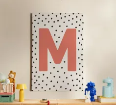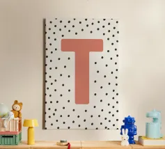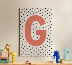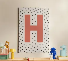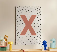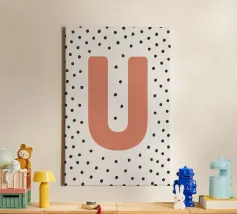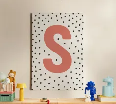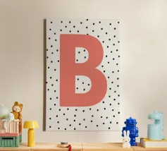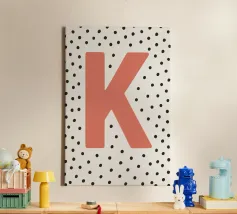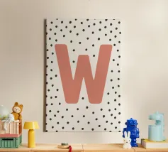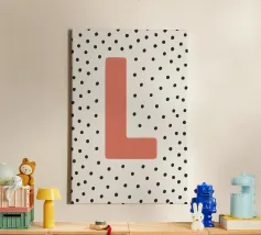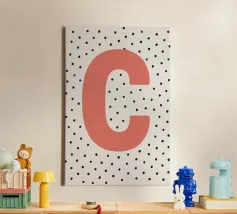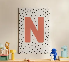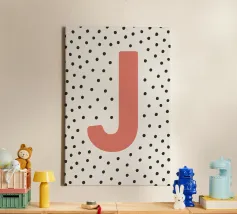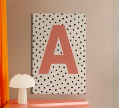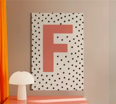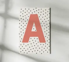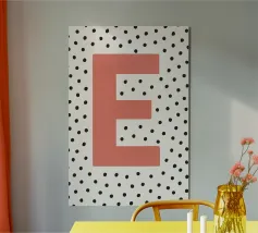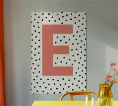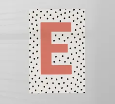 Le design ludique avec la lettre "E" en rouge vif sur un motif à pois noir attire l'attention avec style. Parfait pour les chambres d'enfants, les intérieurs modernes ou comme idée de cadeau avec une touche personnelle. La typographie claire combinée à un motif d'inspiration scandinave confère à chaque pièce une touche de charme. Idéal pour combiner avec d'autres lettres de la série.