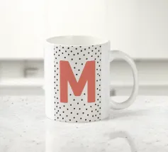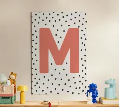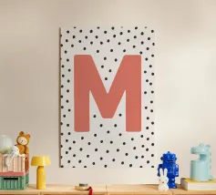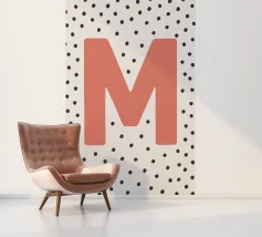 Le design ludique avec la lettre "M" en rouge vif sur un motif à pois noir attire l'attention avec style. Parfait pour les chambres d'enfants, les intérieurs modernes ou comme idée de cadeau avec une touche personnelle. La typographie claire combinée à un motif d'inspiration scandinave confère à chaque pièce un accent charmant. Idéal pour combiner avec d'autres lettres de la série.
