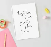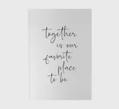 Ajoutez une touche de romantisme avec notre motif "Together is our favorite place to be". Avec sa police noire écrite à la main sur fond blanc, cette citation inspirante est parfaite pour les couples et les familles. Choisissez parmi un poster, un coussin, un rideau de douche ou des mugs pour apporter chaleur et amour à votre espace. Une merveilleuse idée de cadeau pour votre bien-aimé(e) ou un ajout charmant à votre décoration intérieure. Célébrez la magie de l'union avec notre imprimé typographique.