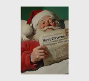 Le Père Noël s'accorde une pause bien méritée après une longue nuit : satisfait, il est allongé dans son lit et se détend en lisant le journal avec le titre "Merry Christmas". L'éclairage chaleureux, son sourire joyeux et l'ambiance conviviale dégagent une pure satisfaction et une joie festive - un motif de Noël plein d'humour et qui réchauffe le cœur.