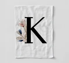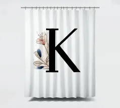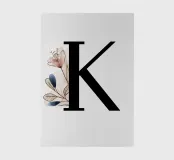 Ce design élégant présente la lettre K noire, mise en valeur par une fine ligne le long de sa longue tige. Juste à côté de la ligne se trouve un délicat motif floral qui ajoute une touche d'élégance à ce look minimaliste et moderne. Parfait pour les T-shirts, les sacs, les carnets de notes, les coussins, les coques de téléphone portable, les tasses, les rideaux de douche et les serviettes. Un accroche-regard particulier pour votre maison et un super cadeau pour vos proches.