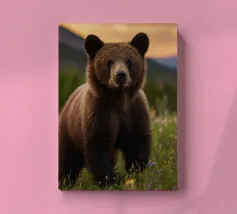 Un ours brun se repose paisiblement parmi les hautes herbes dans un cadre serein, se prélassant dans la douce lumière du matin, entouré par la beauté de la nature.
