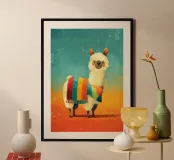 Joyeux lama avec foulard à rayures multicolores hahnemühle