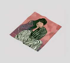 La lumière du soleil filtre à travers les feuilles tropicales alors qu'elle flotte paisiblement dans une piscine, complètement à l'aise. Le monde qui l'entoure s'évanouit dans des couleurs douces et des formes tranquilles - les boules de plage, les sandales et le temps lui-même sont tous laissés derrière elle. Expiration visuelle, cette œuvre nous rappelle qu'il faut faire une pause, respirer et laisser le repos nous suffire.