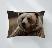 Un ours brun se repose paisiblement parmi les hautes herbes dans un cadre serein, se prélassant dans la douce lumière du matin, entouré par la beauté de la nature.