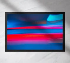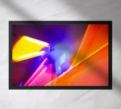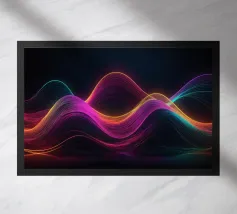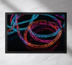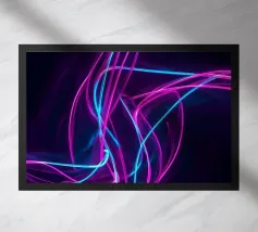 Cette œuvre d'art présente des lignes fluides et vibrantes dans des tons de rose, de bleu et de violet sur un fond sombre, créant un design abstrait hypnotique parfait pour les projets artistiques.