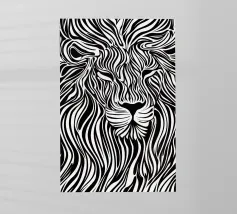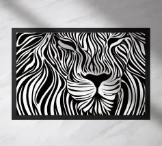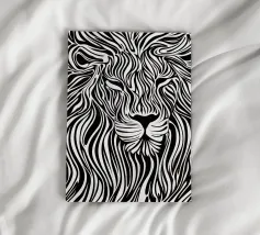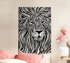 Ce portrait de lion hypnotique fusionne la majesté sauvage du roi des animaux avec la sophistication visuelle de l'op art. Les rayures fluides de type zèbre transforment la crinière en un champ d'énergie kaléidoscopique - un hommage à Bridget Riley et Victor Vasarely qui élève l'animal au rang d'œuvre d'art graphique. Les flux de lignes rythmiques créent un mouvement optique et confèrent au motif statique une vivacité presque hypnotique. Une déclaration puissante pour les espaces modernes, qui allie une force symbolique archaïque à un langage de design contemporain.