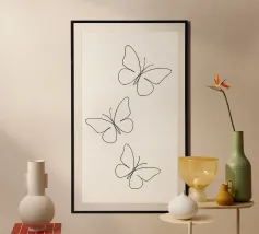 Ce poster minimaliste de mouettes montre trois mouettes dans les airs, réduites à des arcs élégants. Les oiseaux sont dessinés comme des mouettes Line Art et se déplacent en diagonale à travers le format. Il en résulte une image de mouette calme qui suggère le mouvement sans paraître agitée. Le grand espace blanc fait de ce motif une image minimaliste qui peut être utilisée dans des pièces plus petites. Chaque oiseau est clairement reconnaissable.