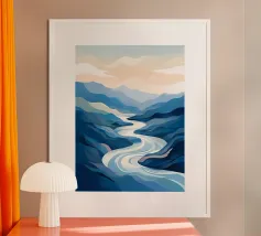 Entrez dans un paysage paisible d'un autre monde, où une mystérieuse sphère en argent poli est suspendue au-dessus d'une rivière qui serpente doucement. Cette scène onirique est baignée d'une lumière douce et éthérée, le reflet de la sphère ondulant à la surface de l'eau, créant des motifs abstraits d'ombre et de lumière. Les rives sont bordées de roseaux délicats et plumeux, dans des tons sourds de blanc et de gris, qui ajoutent à l'atmosphère sereine et mystique. Cette œuvre est un mélange captivant de beauté naturelle et d'éléments surréalistes, parfait pour ceux qui apprécient l'art qui évoque un sentiment de calme, d'émerveillement et d'introspection.