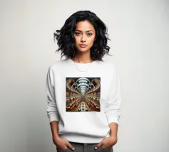 Une vue fascinante de murs architecturaux dorés se courbant vers l'intérieur pour former un motif circulaire, créant un design symétrique rayonnant. Les détails complexes et les tons chauds évoquent la grandeur et la sophistication artistique dans une perspective surréaliste.