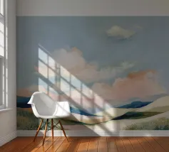 An abstract landscape of soft clouds and gentle light with a calm, balanced atmosphere.