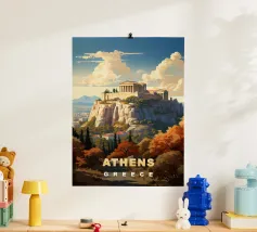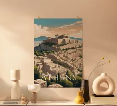 Entrez dans la majesté antique d'Athènes, en Grèce, avec cette impression d'art captivante de l'Acropole emblématique. L'image montre le Parthénon historique et les structures environnantes perchées au sommet de la colline accidentée, surplombant des ruines anciennes et un feuillage doré vibrant, le tout sous un ciel clair et azur. Ce poster numérique de qualité supérieure (7000x5000 pixels, 300 dpi) transmet magnifiquement la grandeur intemporelle et l'importance historique d'Athènes. Il est parfait pour ajouter une touche sophistiquée et culturellement riche à votre maison ou à votre bureau.