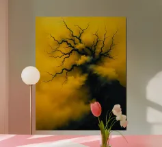 La silhouette saisissante d'un arbre dont les branches s'illuminent crée un motif abstrait et enchanteur adapté au papier peint. L'arrière-plan nocturne renforce l'effet lumineux.