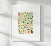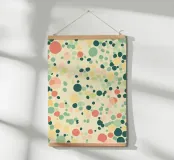 Cette œuvre d'art numérique abstraite et amusante présente un motif dense et aléatoire de cercles et de points qui se chevauchent. La palette inspirée de la modernité du milieu du siècle dernier utilise des couleurs ludiques telles que le rose corail, le jaune pâle, le vert citron et la sarcelle profonde sur un fond crème. La variété de taille et de couleur des points crée une texture joyeuse, semblable à des confettis, et un rythme visuel dynamique. Ce motif vivant est idéal pour ajouter une touche de charme rétro et d'énergie ludique à un salon, un bureau ou un espace pour enfants. Ce poster numérique de haute qualité (7000x5000 pixels, 300 dpi) garantit une reproduction parfaite des couleurs vives.
