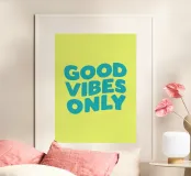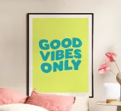 Good Vibes Only Typography Print jaune et bleu hahnemühle