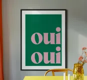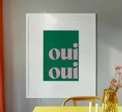 citation française, oui oui art, décoration d'inspiration parisienne, design typographique rétro, phrase française artwork, bold minimal print