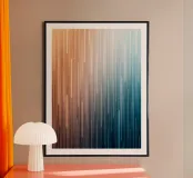 Cette œuvre abstraite saisissante capture une transition magnifique et sereine, avec un doux dégradé qui passe de tons chauds et ensoleillés à gauche à des teintes froides et bleues profondes à droite. La composition est définie par un ensemble de lignes verticales, dont la longueur et l'opacité varient, créant une impression de mouvement et de flux dynamiques. Cette œuvre d'art évoque un sentiment de contemplation tranquille et d'élégance moderne, ce qui en fait un complément parfait à tout espace contemporain. C'est une métaphore visuelle des voyages parallèles du jour et de la nuit, de la chaleur et de la fraîcheur, ou de l'aube et du crépuscule.