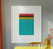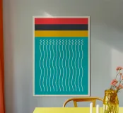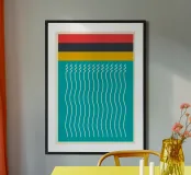 Poster abstrait lignes ondulées sarcelle jaune rouge art géométrique hahnemühle