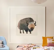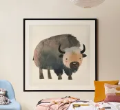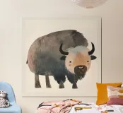 Représentation fantaisiste et douce d'un bison dans des tons chauds. hahnemühle