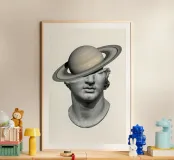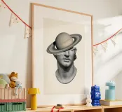 Élevez votre espace avec cette impression d'art surréaliste saisissante qui fusionne la sculpture classique avec l'imagination cosmique. Un buste de marbre intemporel est réimaginé avec la planète Saturne émergeant de sa tête, créant une fusion audacieuse de l'art ancien et de la fantaisie moderne. Parfait pour les amateurs d'esthétique minimale, d'art des statues grecques, de thèmes spatiaux et de décoration murale contemporaine, ce design ajoute de la profondeur, de la créativité et de l'énergie à la conversation dans n'importe quelle pièce. Idéal pour les salons, les studios, les bureaux et les espaces intérieurs modernes.