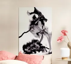Cette œuvre d'art fascinante joue sur la tension entre les lignes claires et les formes fluides. Les rayures verticales confèrent à la composition une sensation de structure, tandis que les gouttes noires ajoutent une dynamique et une profondeur visuelles. Dans sa réduction au noir et au blanc, cette œuvre abstraite invite à l'interprétation et transmet un équilibre entre ordre et chaos. Parfait pour les espaces modernes qui recherchent une élégance minimaliste avec une profondeur émotionnelle.