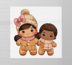 Deux biscuits de pain d'épice souriants sont habillés en tenue de fête, l'un portant un chapeau de Père Noël et l'autre tenant une pomme. La phrase "J'enseigne aux biscuits les plus intelligents du lot" est imprimée autour d'eux, ajoutant un thème ludique et éducatif.