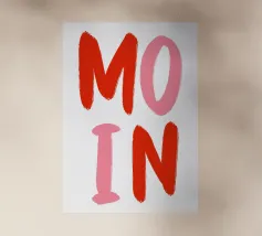 Commence ta journée avec un joyeux Moin ! Cet imprimé de style manuscrit avec une écriture bleue apporte une fraîcheur nordique dans chaque maison. Idéal pour chaque pièce qui a besoin d'une dose de charme et d'une atmosphère détendue. Que ce soit dans l'entrée, le salon ou le bureau, cet imprimé est une salutation simple qui répand immédiatement la bonne humeur.