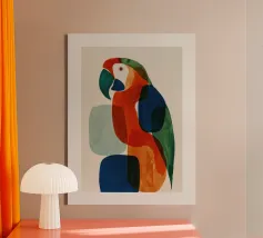 "Patchwork Perfection" capture la beauté vibrante des oiseaux, chacun orné d'une mosaïque de motifs colorés. Cette impression d'art célèbre l'harmonie de la palette de la nature à travers les détails complexes des plumes.