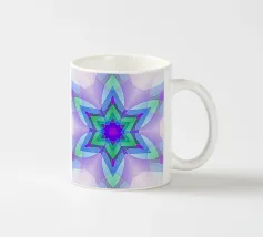 Étoile à 5 branches avec des formes décorées dans les couleurs vert-jaune-bleu.