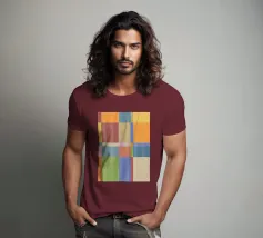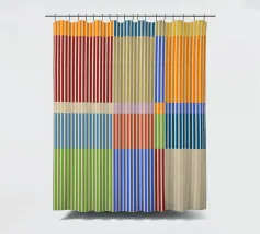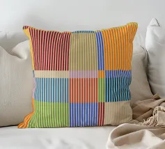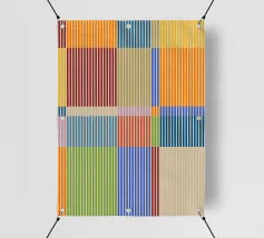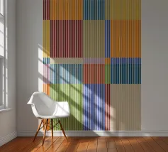 Un motif géométrique saisissant composé de fines rayures verticales dans des teintes vibrantes de rouge foncé, bleu, vert, rose, jaune et orange sur un fond beige doux. Ce motif crée un effet patchwork dynamique avec un jeu de couleurs et une esthétique moderne inspirée du Bauhaus. Parfait pour dynamiser votre décoration d'intérieur, vos accessoires, vos vêtements et bien d'autres choses encore, grâce à son charme épuré et contemporain et à son style rayé vibrant !