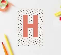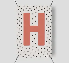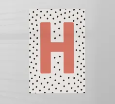 Le design ludique avec la lettre "H" en rouge vif sur un motif à pois noir attire l'attention avec style. Parfait pour les chambres d'enfants, les intérieurs modernes ou comme idée de cadeau avec une touche personnelle. La typographie claire combinée à un motif d'inspiration scandinave confère à chaque pièce une touche de charme. Idéal pour combiner avec d'autres lettres de la série.