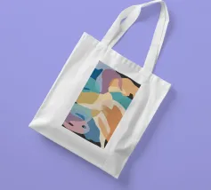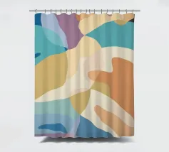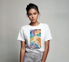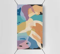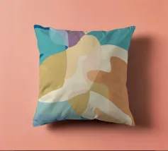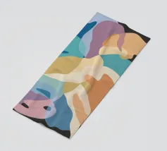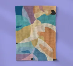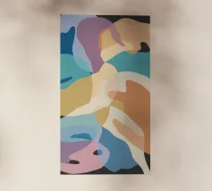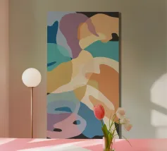 Une élégante composition abstraite de formes superposées, semblables à des feuilles, dans une palette de couleurs douces et pastel, créant un sentiment de mouvement doux et d'harmonie organique sereine.