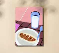 Au cours de ses études en beaux-arts, Rachel Peck est tombée amoureuse du design. La possibilité de créer une affiche d'exposition pour ses camarades de classe l'a incitée à s'inscrire à un cours d'illustration et de graphisme au Billy Blue College of Design. Aujourd'hui installée dans le Colorado, la créatrice australienne admire des illustrateurs tels que McBess, Natali Koromoto et Andy Remeter, et trouve son inspiration dans les vortex de Pinterest et Tumblr. Son esthétique ludique et bienveillante se caractérise par un travail au trait épais, des motifs et des pastels agréables, dans un retour aux dessins animés pour enfants et à la nostalgie des années 80.