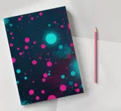 Des cercles colorés dans des tons de bleu et de rose s'éparpillent sur un fond sombre, créant un motif abstrait vivant parfait pour améliorer l'esthétique du bureau et les expressions artistiques.