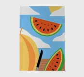 qui présente des tranches de pastèques fraîches sur un fond lumineux, créant ainsi un aspect attrayant et joyeux.