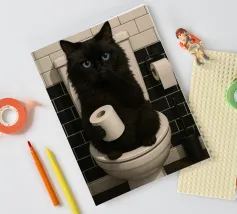 Un poster de salle de bains humoristique aux douces couleurs pastel avec le texte joyeux "Assieds-toi" invite à sourire dans les toilettes des invités. Avec un graphisme minimaliste et du papier toilette et des éléments dessinés à la main, il crée une atmosphère amusante et un message clair contre le fait de faire pipi debout !