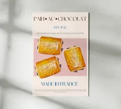 Set on a neutral, cream background, this elegant illustration of the famous dessert eclairs adds sophistication to any kitchen, cafe or dining area. This minimalist yet informative design will spark conversation in any setting, adding a refined touch to your environment.