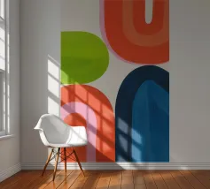 Un motif popart abstrait au charme des années 70 présente des champs de couleurs et des motifs colorés, en orange-rose-vert. La structure colorée rencontre des illustrations modernes et ludiques au design graphique. Vivant et structuré, avec une esthétique claire et géométrique.