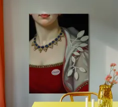"Emo Diva porte la fusion des styles à un autre niveau en transformant un portrait néoclassique en une représentation gothique-métallique pleine d'attitude. Ce collage numérique crée un nouveau récit où l'élégance classique se mêle à la rébellion contemporaine, invitant le spectateur à réfléchir à la diversité des expressions culturelles et esthétiques."