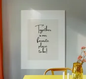 Un design charmant avec l'inscription "Together is our favorite place to be" dans une jolie écriture manuscrite. Une œuvre d'art qui s'adapte à tous les styles.