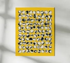 “Loopscape” est une œuvre immersive qui transforme la répétition en voyage visuel. Des formes organiques – demi-lunes, vagues, ellipses – se répètent comme des ondulations, évoquant un paysage abstrait. Chaque motif se fond dans le suivant, créant une illusion de mouvement lent, presque méditatif. Idéale pour un intérieur moderne, cette pièce invite à la contemplation et installe une sensation d’harmonie constante.