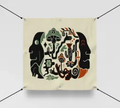 Une illustration funky mais surréaliste du style Krystal Depict, mettant en valeur des motifs excentriques de champignons et de formes abstraites ! L'idée derrière la palette de couleurs et l'illustration était de montrer que l'imagination d'une personne peut "réfléchir" à de multiples concepts et idées différents, tout en prenant la forme d'un mélange harmonieux de différentes pensées en une seule.