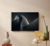 Mirrored beneath, the reflection shimmers in soft distortion, creating a surreal balance between form and illusion. Light and shadow shift along the waves, enhancing the fluid symmetry. Together, waveform and reflection evoke harmony—movement and stillness captured in a single moment.