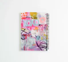 "XOXO" - a cheerful art illustration in vibrant colours that celebrates love and hugs! The abstract acrylic painting combines bright patterns in pink, light blue and orange, with dynamic brushstrokes and polka dots creating playful movement. Perfect for a modern, summer-filled room!