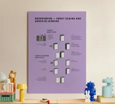 Cette œuvre d'art sur la reliure présente différentes méthodes de reliure de manière détaillée. L'artiste (kathrinmay) y ajoute des éléments subtils. Idéal pour les amoureux des livres, les bibliophiles, ou pour ceux qui souhaitent ajouter une touche de littérature et de reliure à leur maison ou à leur bureau.